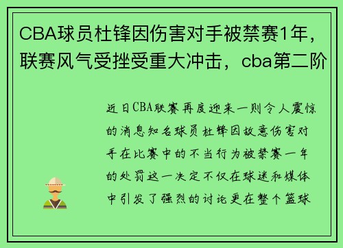近日,CBA联赛再度迎来一则令人震惊的消息——知名球员杜锋因故意伤害对手在比赛中的不当行为,被禁赛一年的处罚。这一决定不仅在球迷和媒体中引发了强烈的讨论,更在整个篮球圈掀起了轩然大波。杜锋作为一名有着较高声誉和影响力的球员,此次因个人行为不当而受到如此严厉的惩罚,无疑让人们开始重新审视当前CBA联赛中的球员行为和体育道德问题。